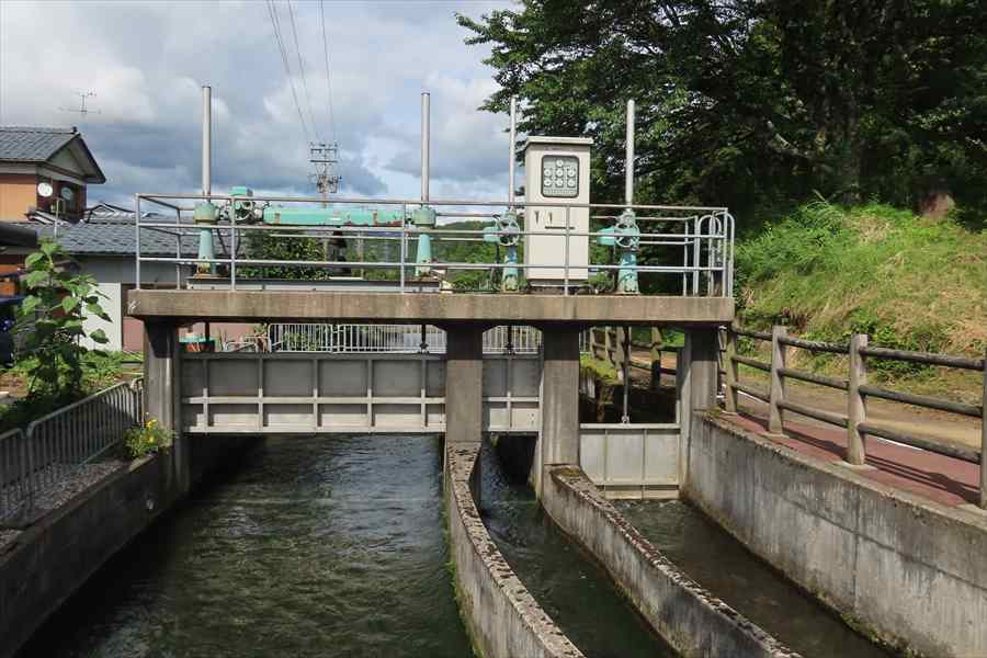 足羽川用水には、岩倉分水工、四ヶ分水工、木田・社江守分水工などもあり、分水されていきます。
