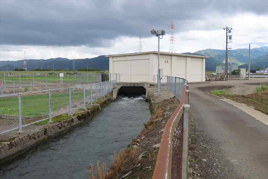 芝原用水の取水口は、鳴鹿大堰(鳴鹿頭首工)の左岸にあります。 右岸には 九頭竜川下流用水の取水口があります。