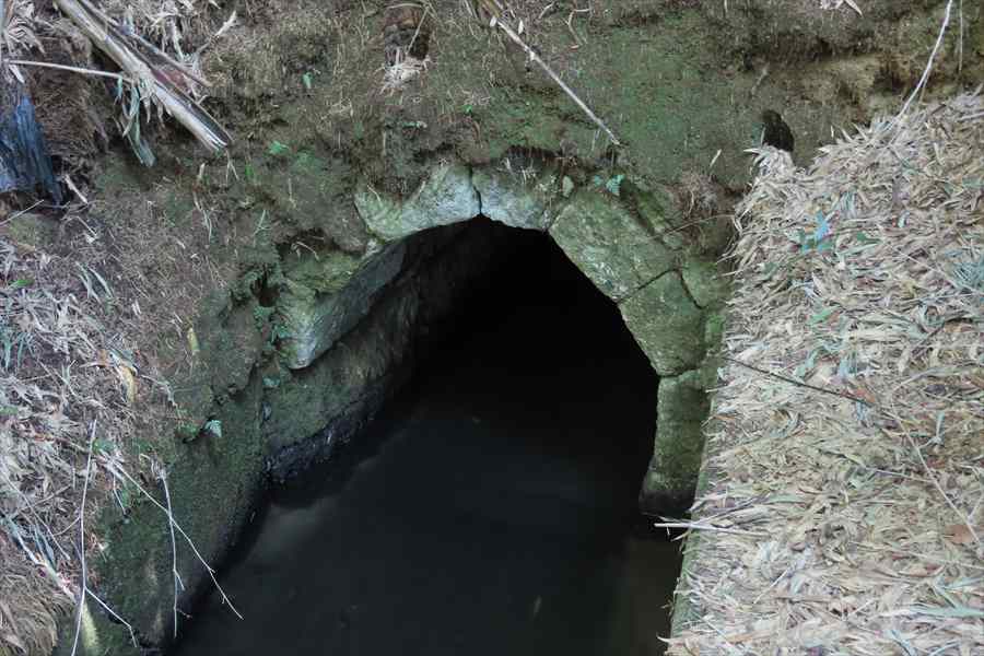 トンネルの点検用入口付近から、上辰巳発電所への導水管があり、寺津用水の水が発電に利用されています。